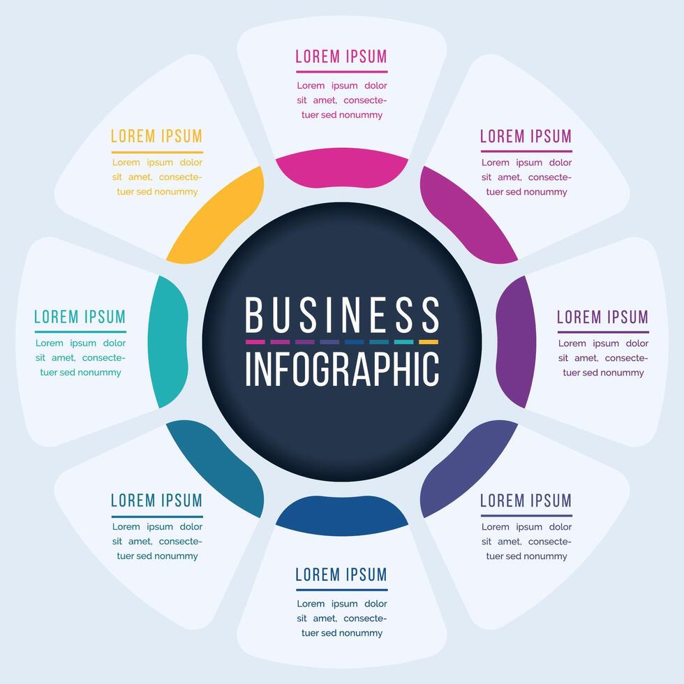 8 Options Infographic circle design 8 steps, objects, elements or options information business infographic template Pro Vector