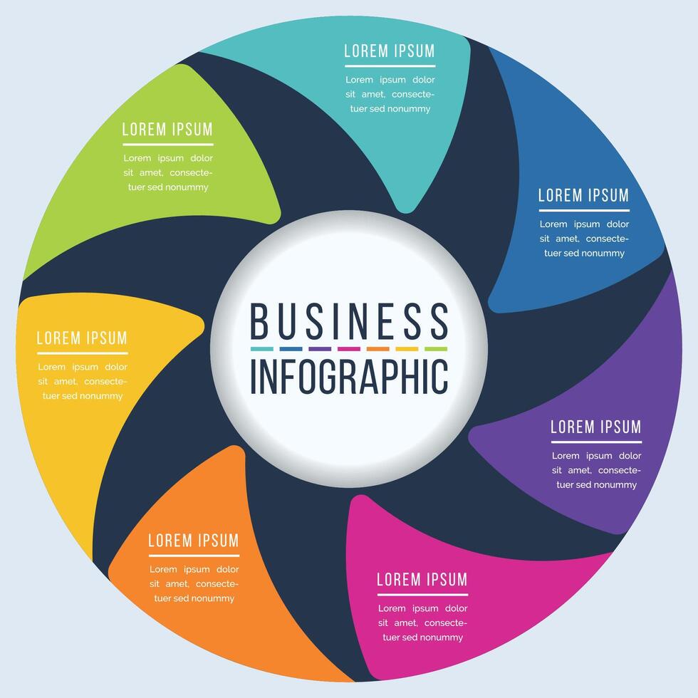 Infographic template 7 options, objects, elements or steps business information circle infographic design Pro Vector