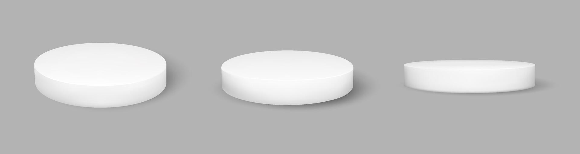 3d round product podium. Circle base angle view isolated object. Circular platform set for showcase exhibition. Cheese cake premium display stand mockup. Event advertising with show plate Pro Vector