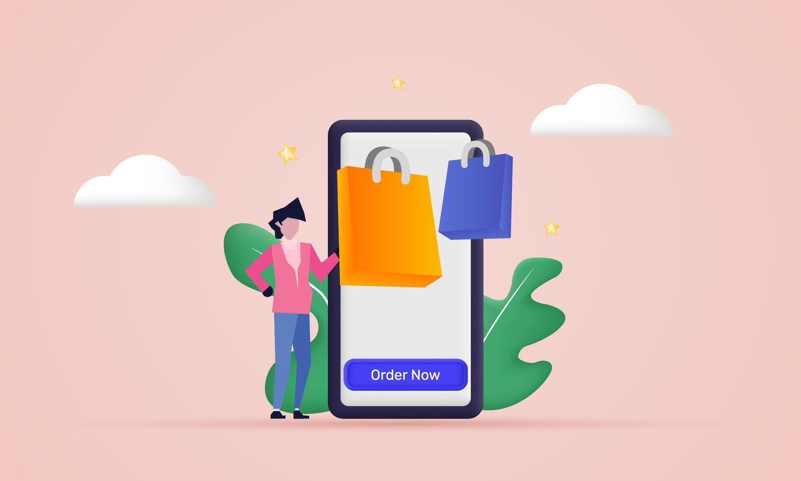 3d character online shopping on application website new idea concept design vector