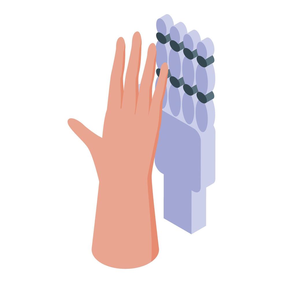 Engineer touching bionic hand with artificial sensors Pro Vector