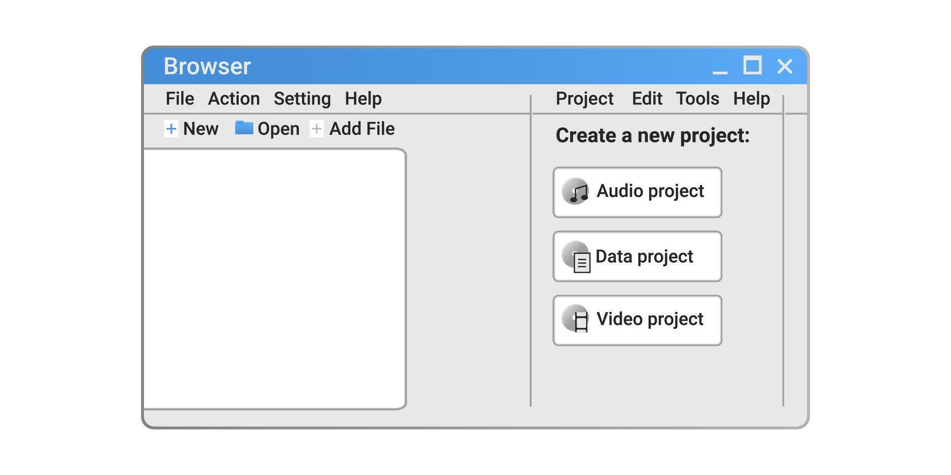 Old internet browser window with options. Retro website page in retro style. Pro Vector