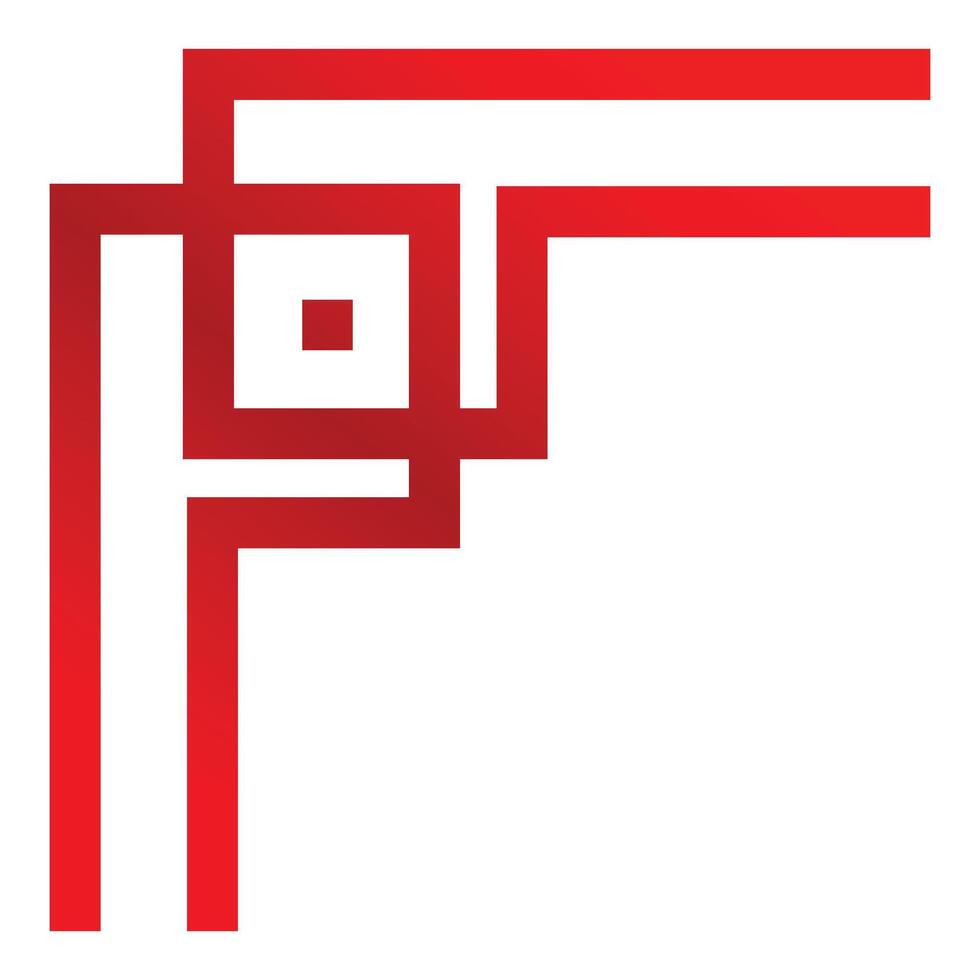 Red geometric shape forming abstract right angle corner design element Pro Vector