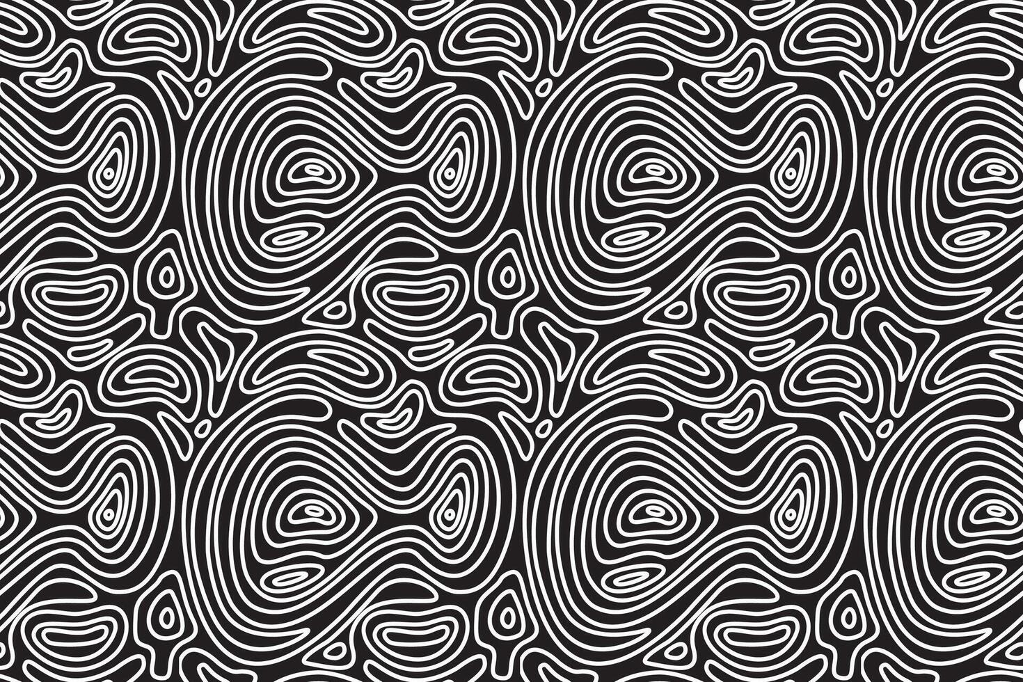 white topographic contour seamless pattern on black background for print design. outdoor geographic contour texture pattern. terrain path isolated pattern. abstract contour line pattern templates Pro Vector