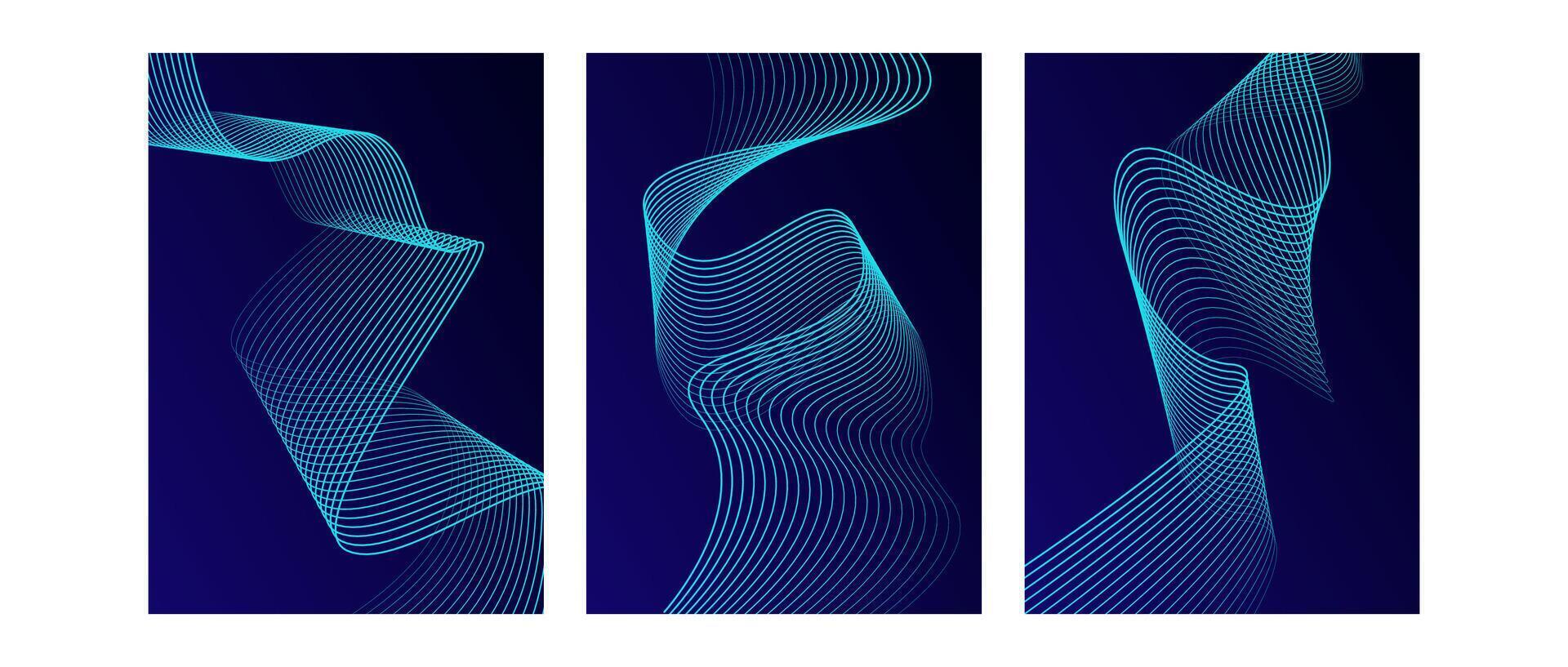 Set of Abstract glowing wave lines on dark blue background. Dynamic wave pattern. Modern flowing wavy lines. Futuristic technology concept Pro Vector