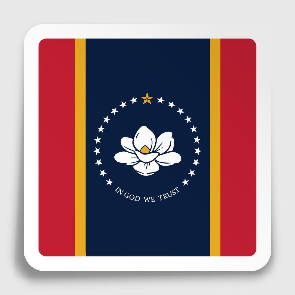 american state of Mississippi flag icon on paper square sticker with shadow. Button for mobile application or web Pro Vector