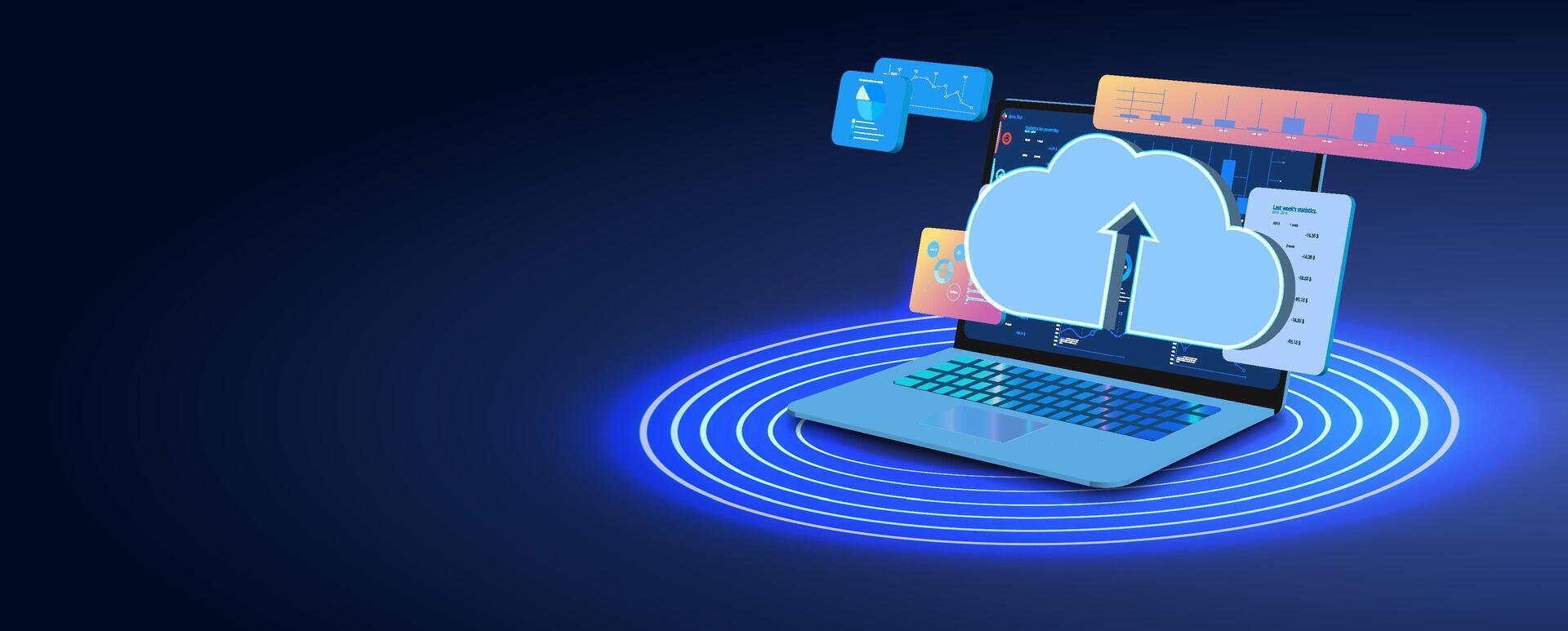 Modern Laptop With Cloud Computing Concept Displayed on Screen During Data Transfer Process in a Digital Environment Pro Vector