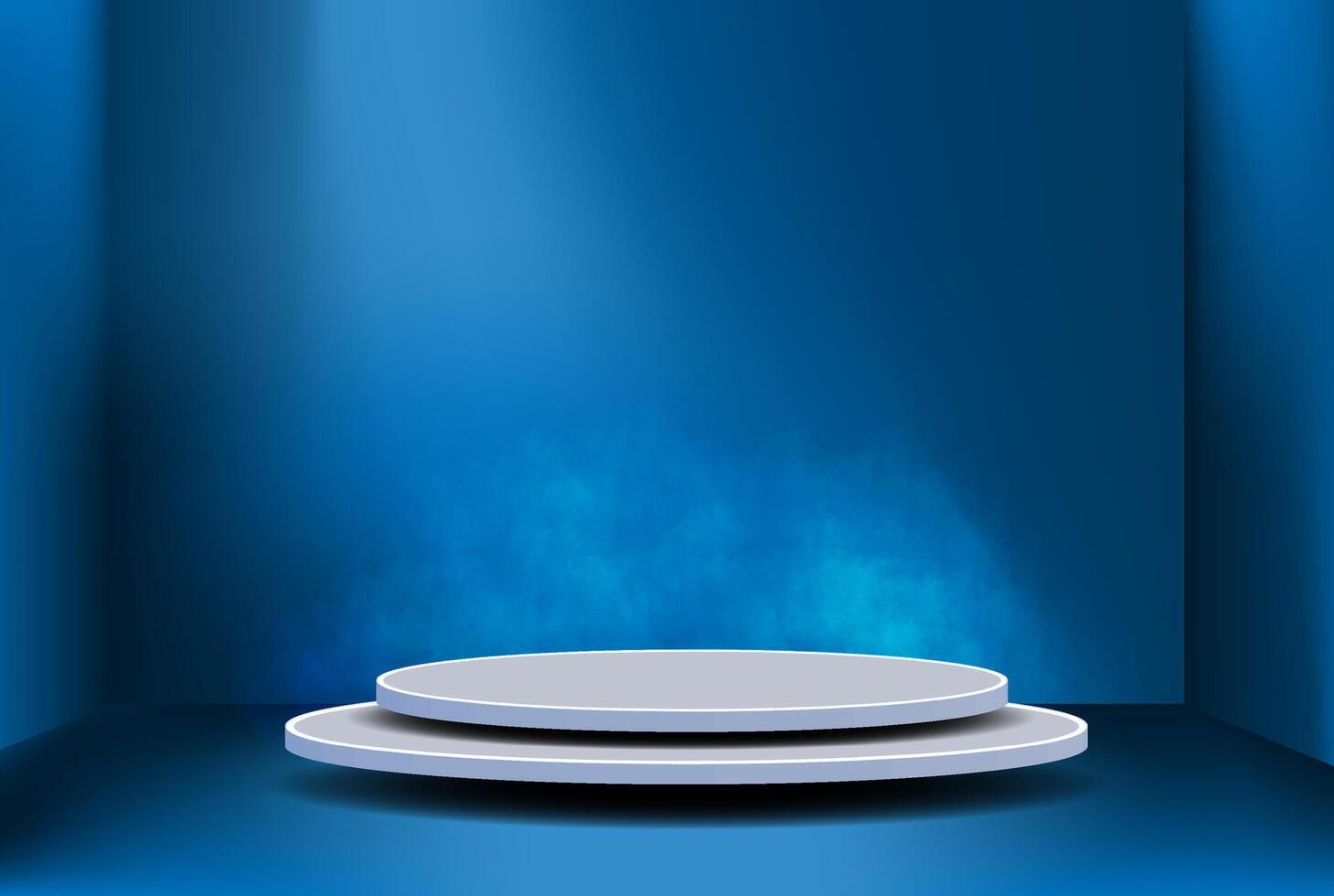 Modern Presentation Space Featuring Circular Platforms Under Soft Blue Lighting Pro Vector