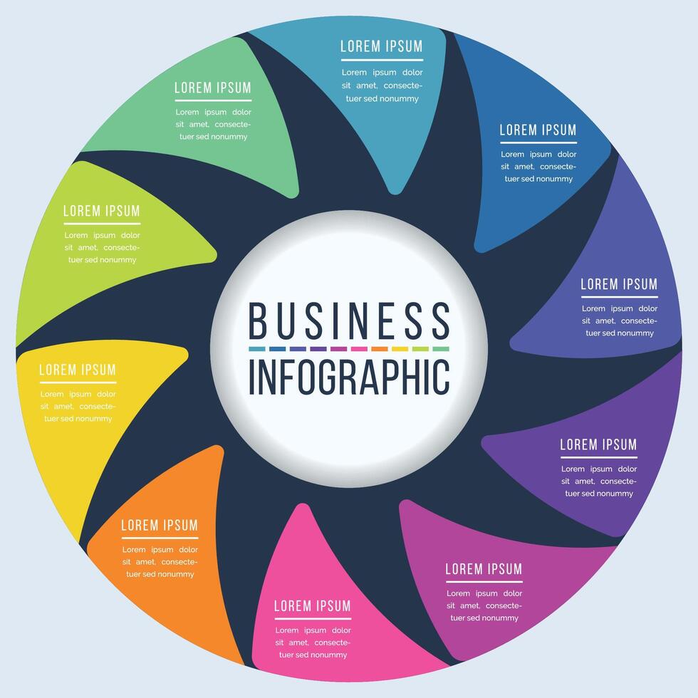 Infographic template 10 options, objects, elements or steps business information circle infographic design Pro Vector