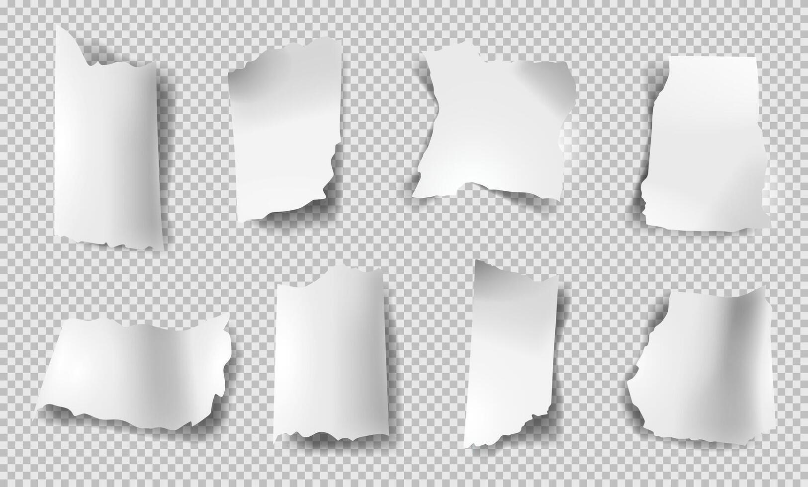 Set of realistic torn paper sheets. Ripped sheets of paper. Scrapbook edge, notebook tear or blank page. Pro Vector