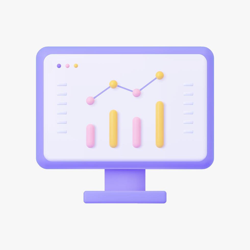 Computer screen with infographic chart 3d icon. Isolated on white. Pro Vector