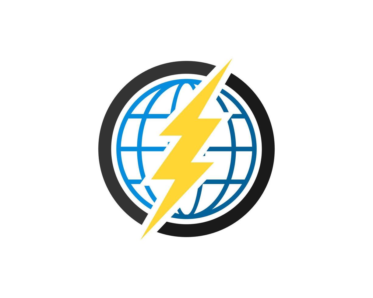 Circle shape with abstract globe and electrical lightning inside vector