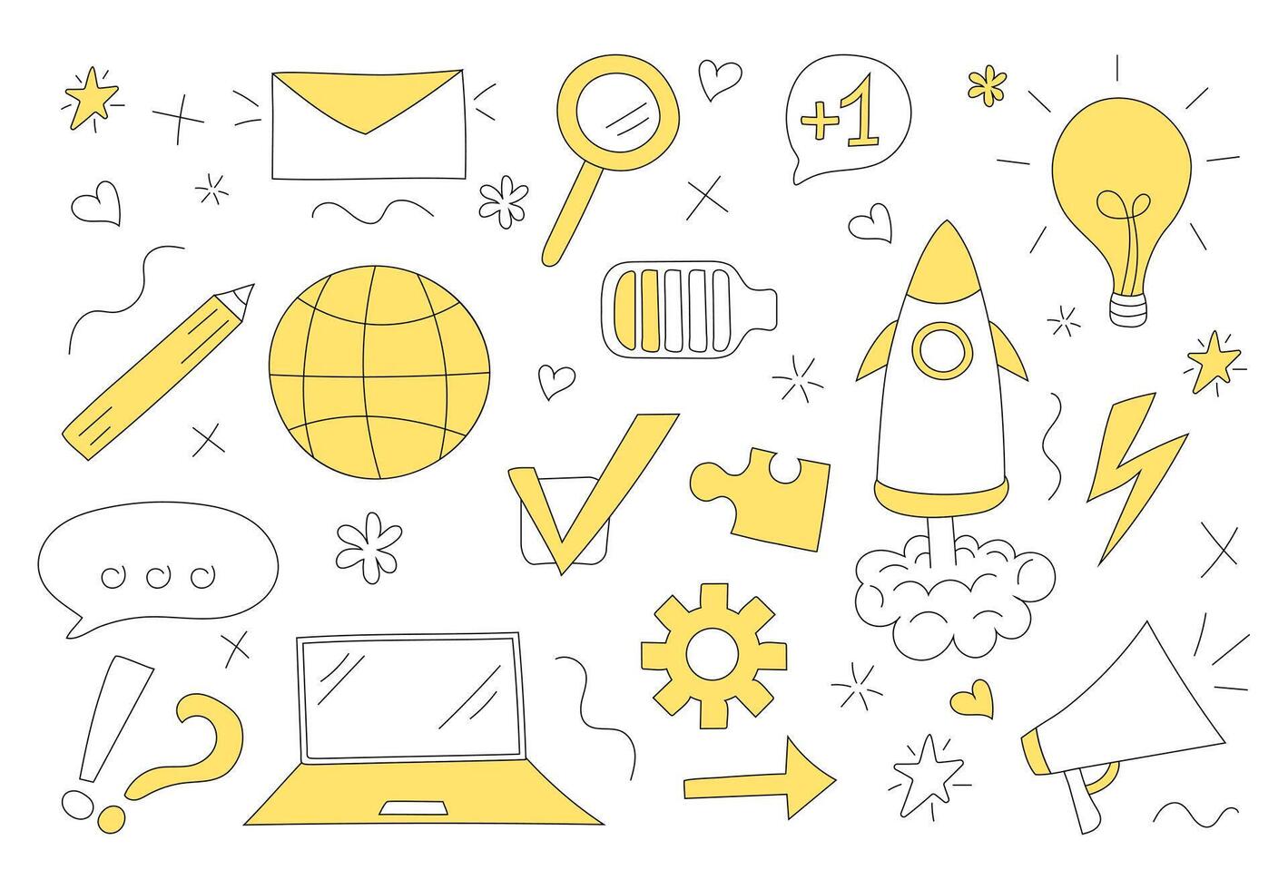 Set with internet elements. Web technology concept. Hand-drawn illustration. Pro Vector