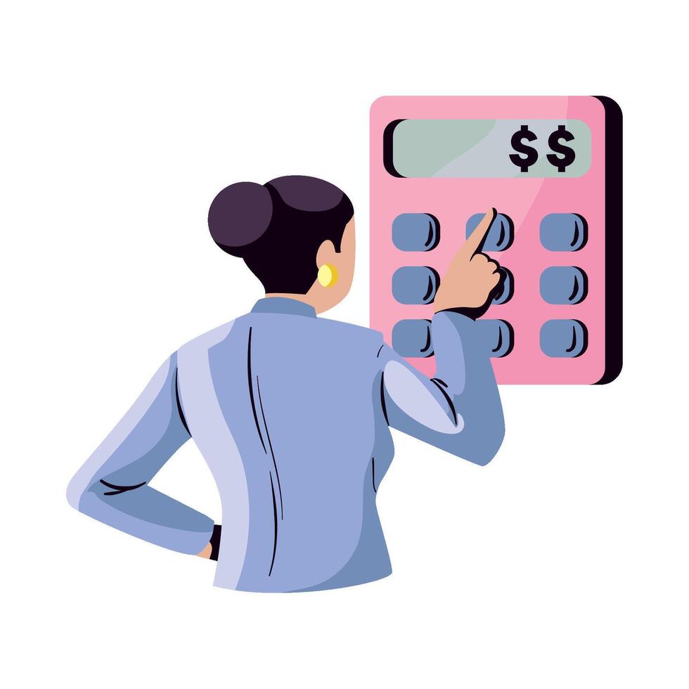 A woman is using a calculator to calculate the cost of a product Pro Vector