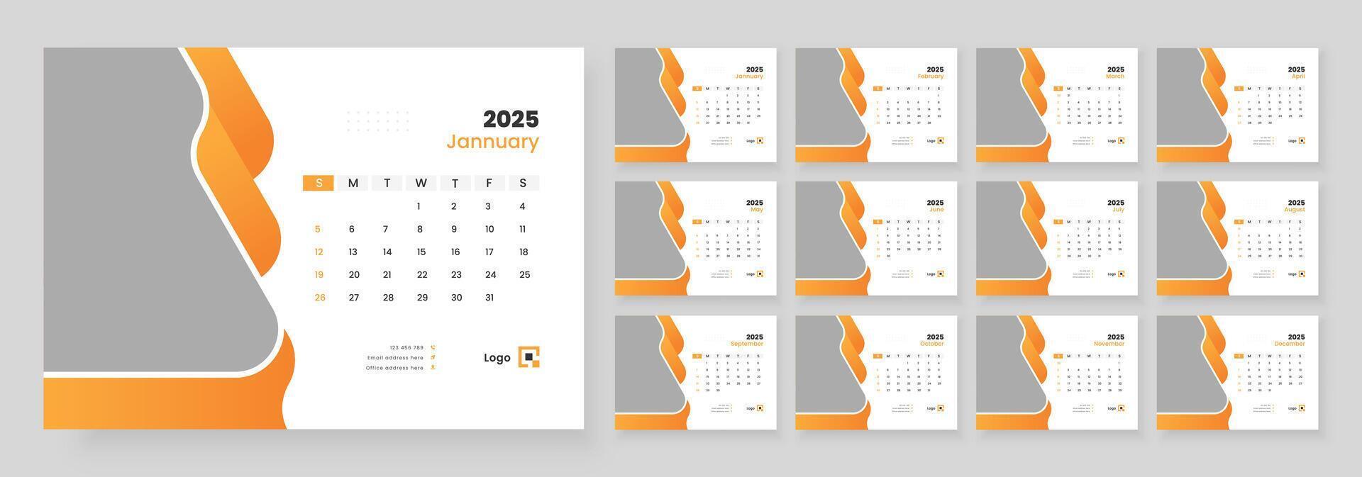 Desk Calendar 2025 template design, Week start on Sunday, Office Calendar 2025. Pro Vector