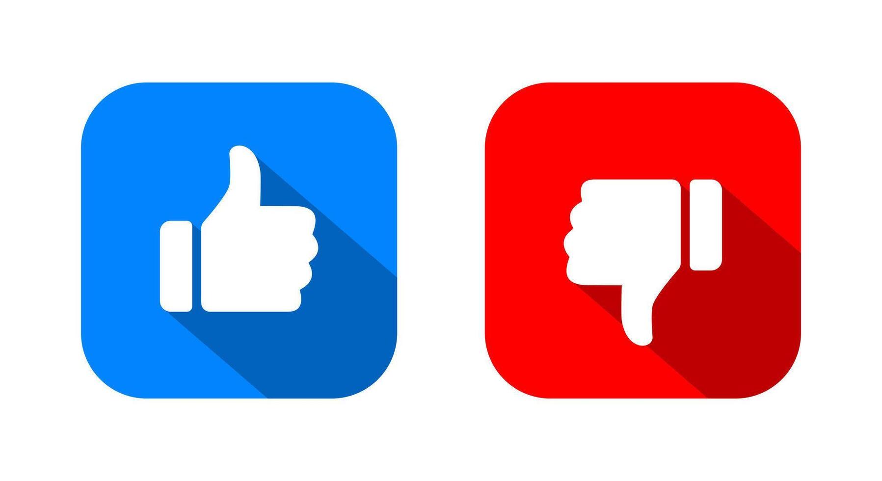 Like and dislike icon on square background. Thumb up and down with long shadow Pro Vector