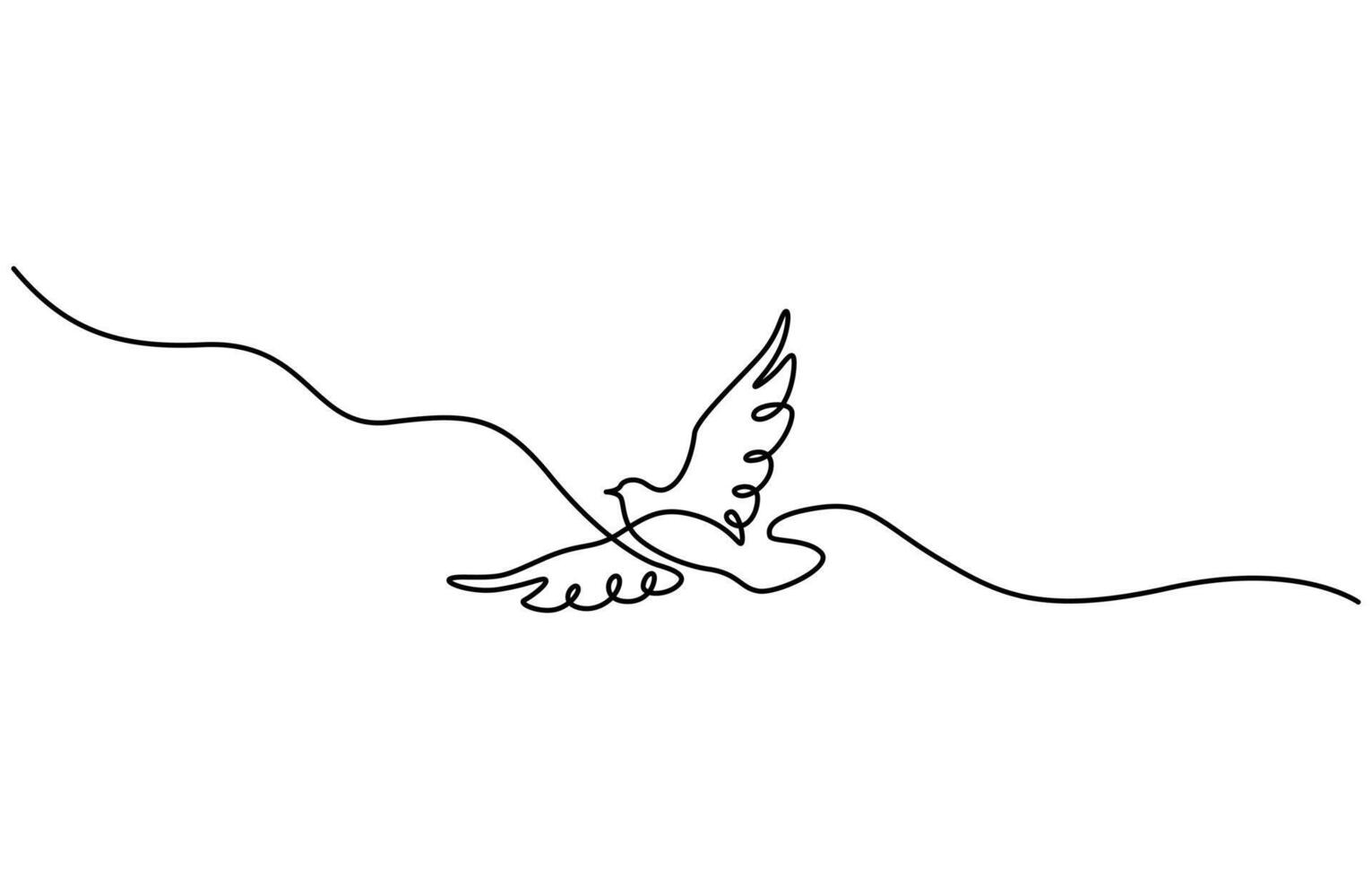 One continuous line drawing of flying up dove, Bird symbol of peace and freedom in simple linear style Pro Vector