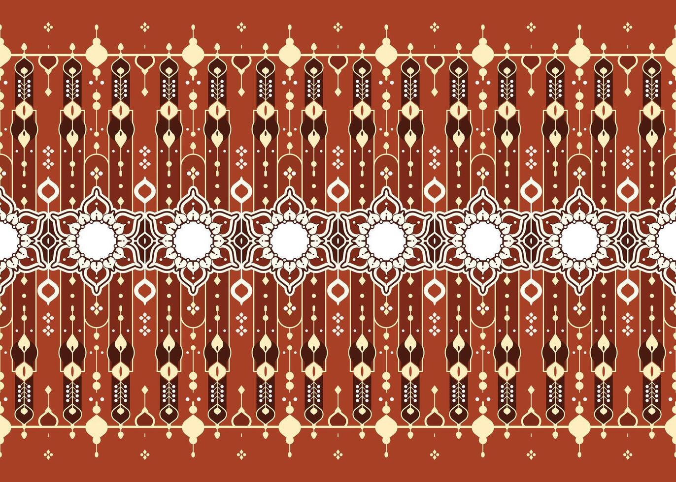 geometric design on deep red background, ethnic fabric seamless pattern design for cloth, carpet, batik, wallpaper, wrapping etc. Pro Vector