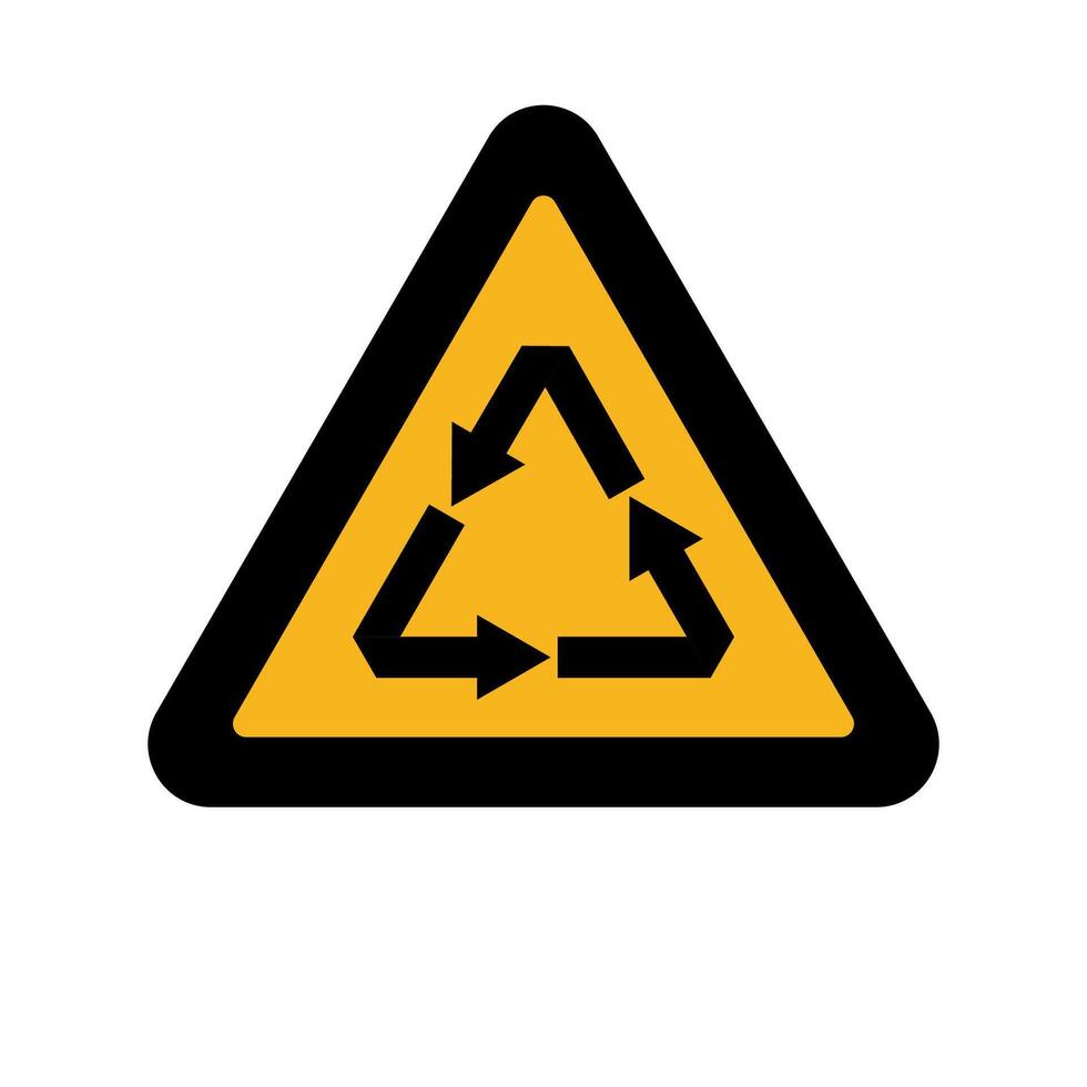 Rounded triangle shape hazard warning sign with arrow symbol. vector