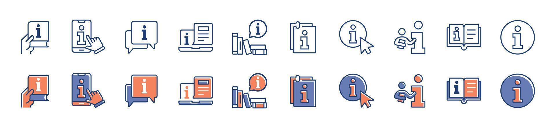manual information guidebook icon set user help online instruction document illustration client faq guidance collection symbol template for web and app Pro Vector