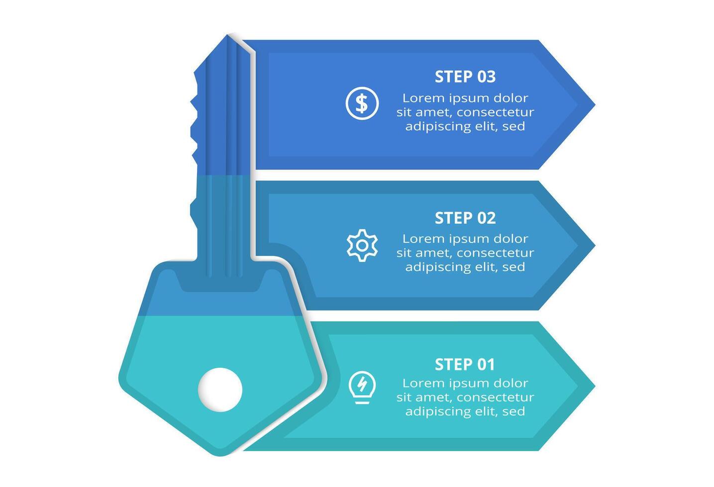 Key with 3 elements, infographic template for web, business, presentations, illustration. Business data visualization. Pro Vector