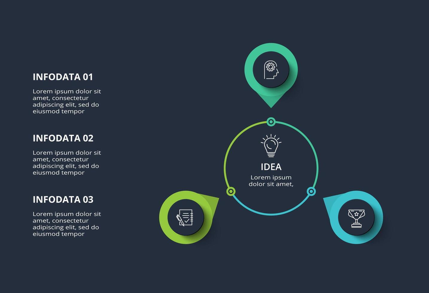 Diagram concept for infographic with 3 steps, options, parts or processes. Template for web on a black background. Pro Vector