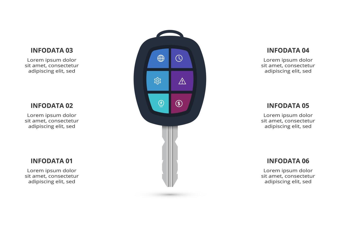 Key with 6 elements, infographic template for web, business, presentations, illustration. Business data visualization. Pro Vector