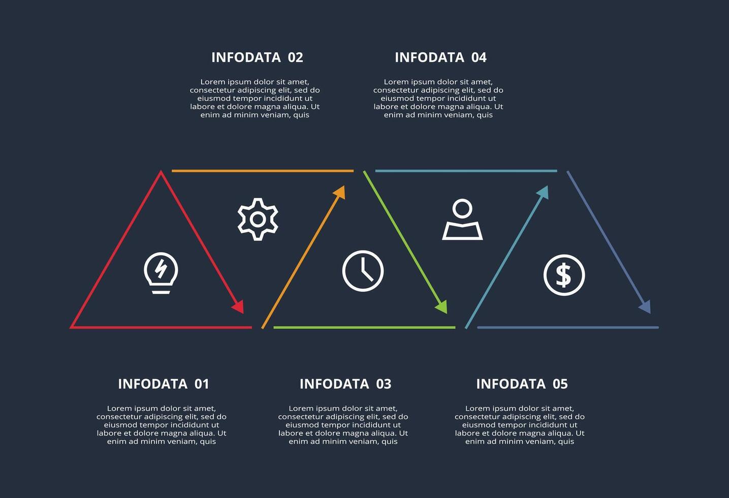 Line concept for infographic with 5 steps, options, parts or processes. Template for web on a black background. Free Vector