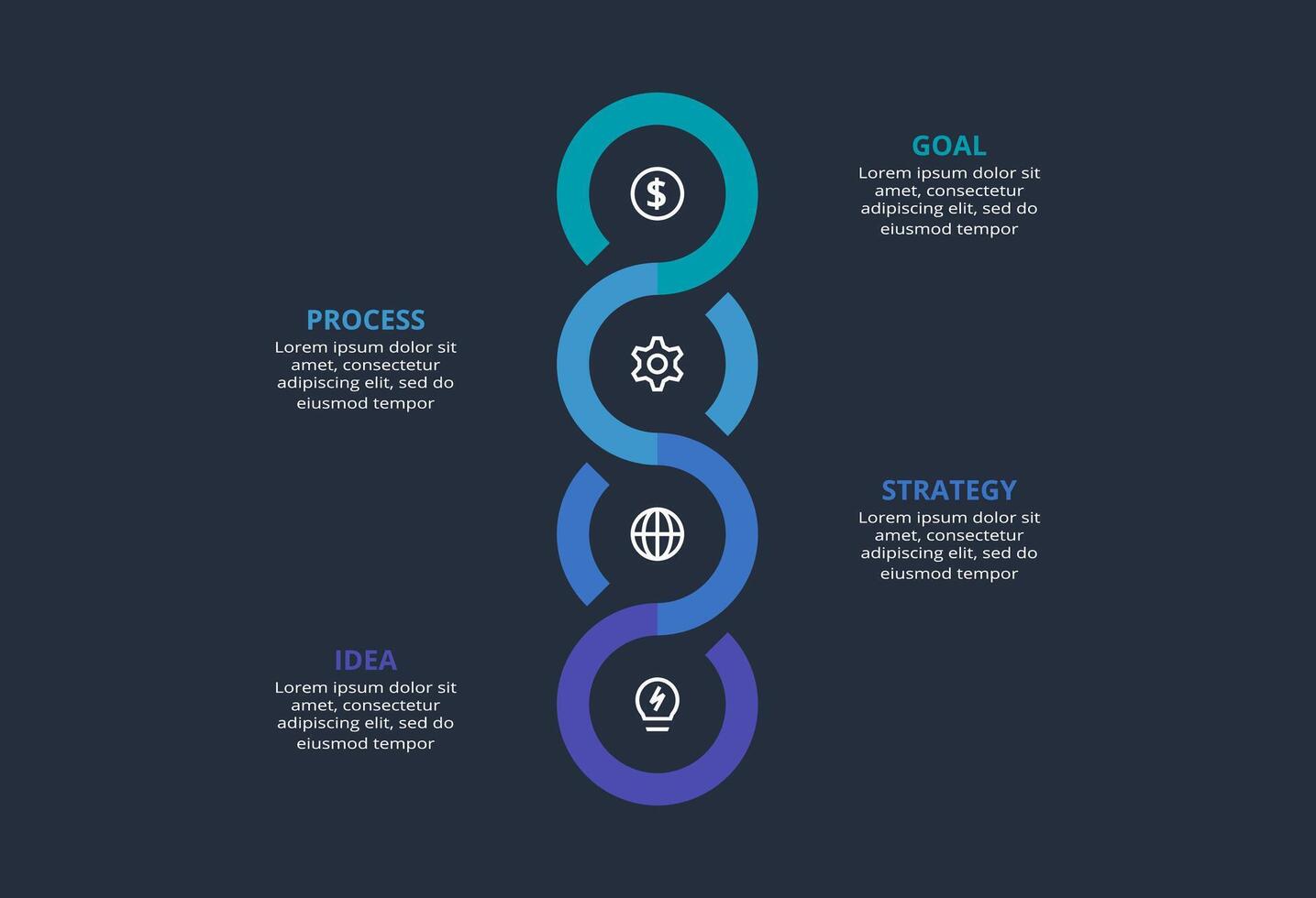 Creative dark infographic with 4 elements template for web on a black background, business, presentation. Pro Vector