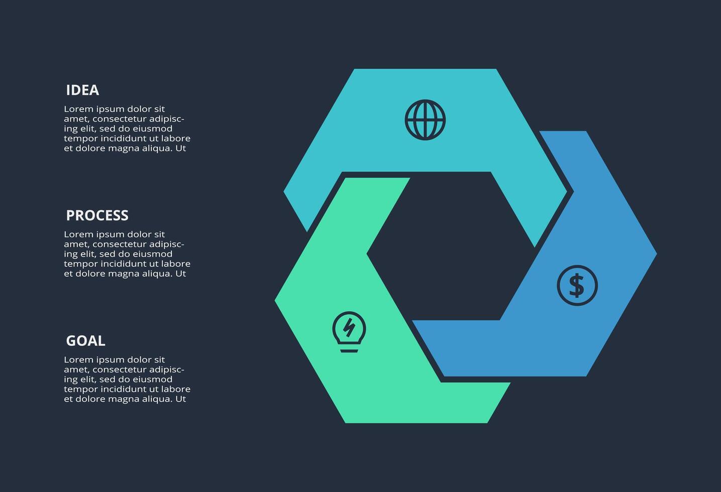 Circle dark infographic with 3 elements template for web on a black background, business, presentation. Pro Vector