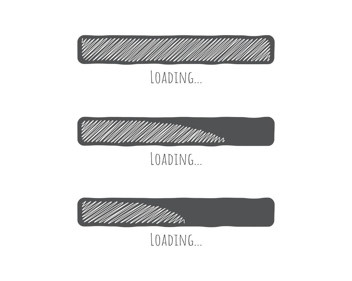 Collection Loading bar status icon. illustration. Set of loaded icons. Download progress. Donload or Upload. Hand-drawn sketch-scribble. Pro Vector
