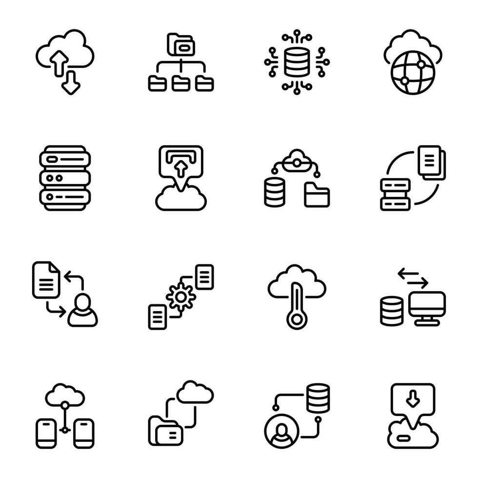 Data Exchange icon set. Includes cloud data, connection, data transfer, information, server, storage, transfer file, and More. Outline icons collection Pro Vector