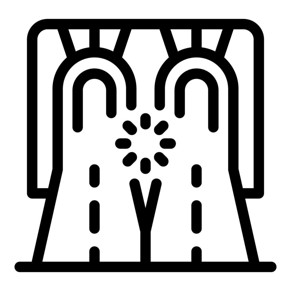 Road splitting into two tunnels with loading icon symbolising difficult decision Pro Vector