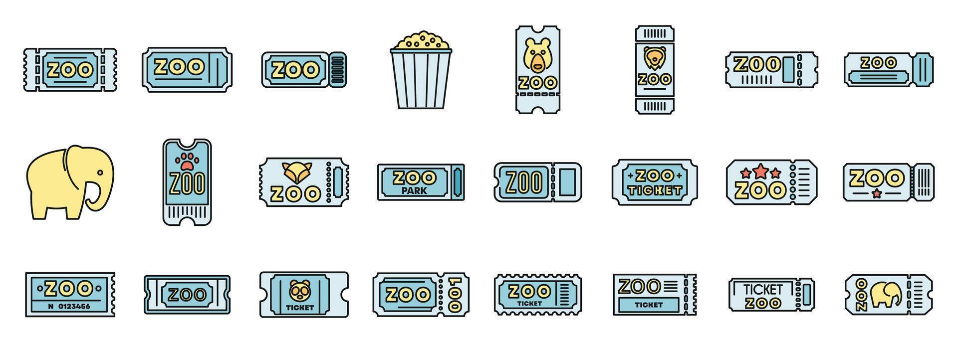 Large set of zoo tickets featuring different animals and popcorn Pro Vector
