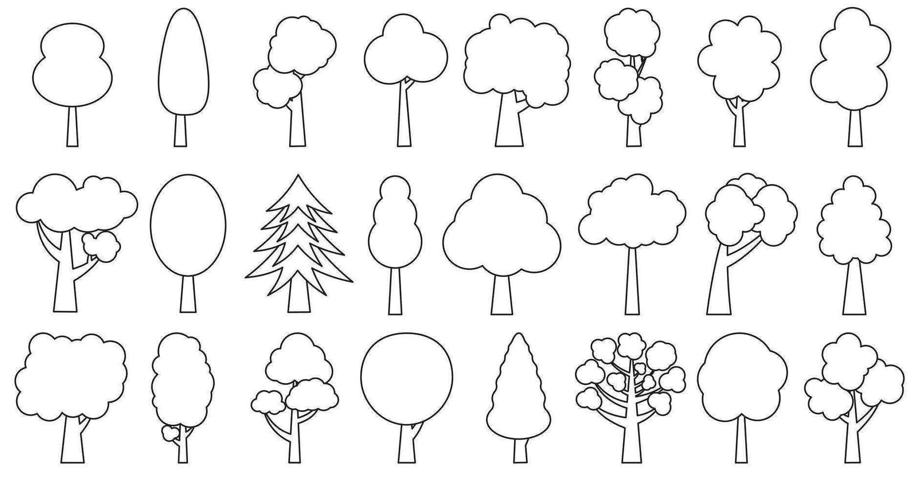 Trees drawn with a thin line. Collection of illustrations of trees. Wood for every taste. Abstraction of trees. Pro Vector