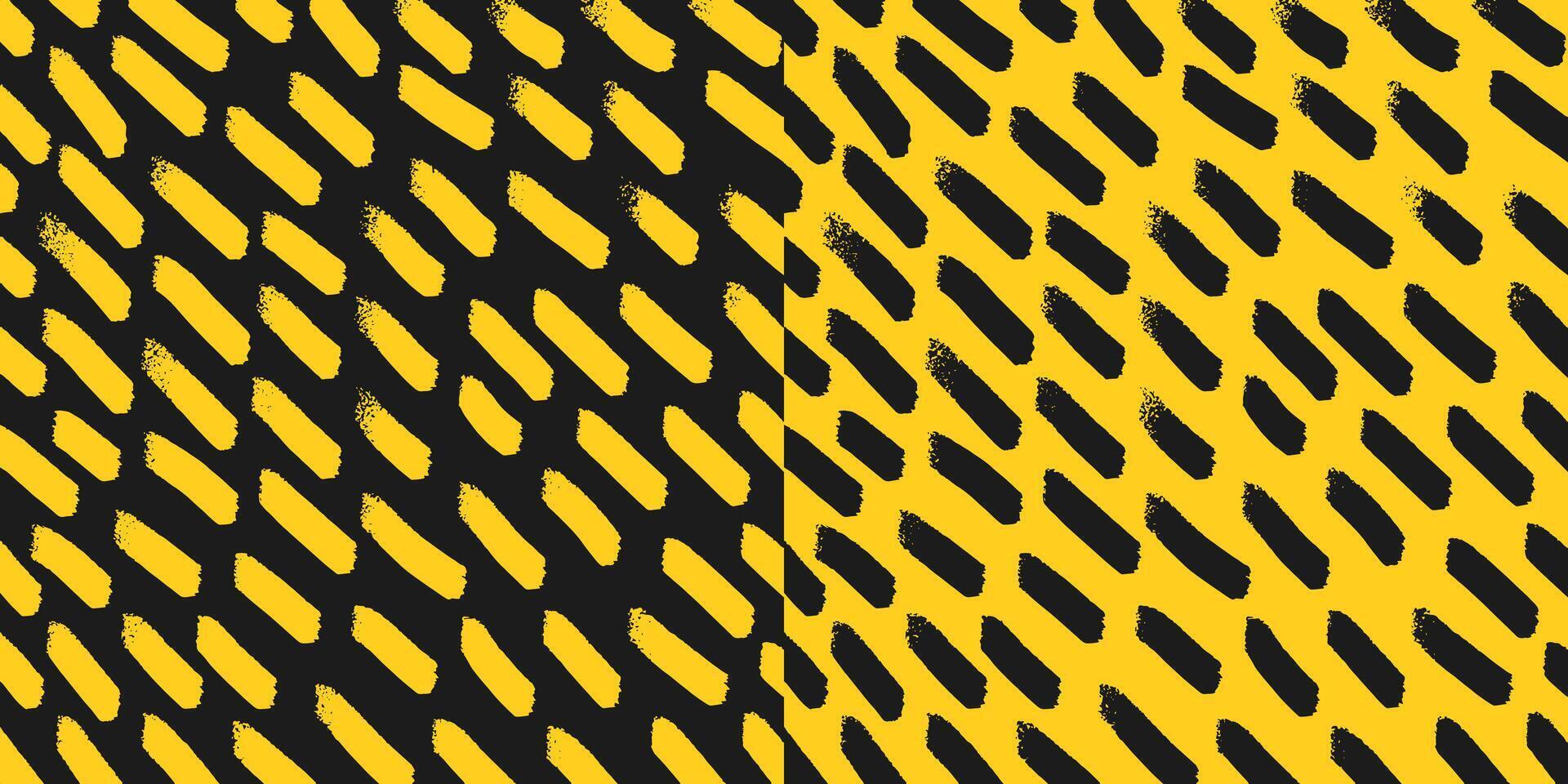 Set of two hand drawn square patterns, chaotic diagonal textured scratches on black and yellow background. Pencil textured strokes and dots, sketch. Pro Vector