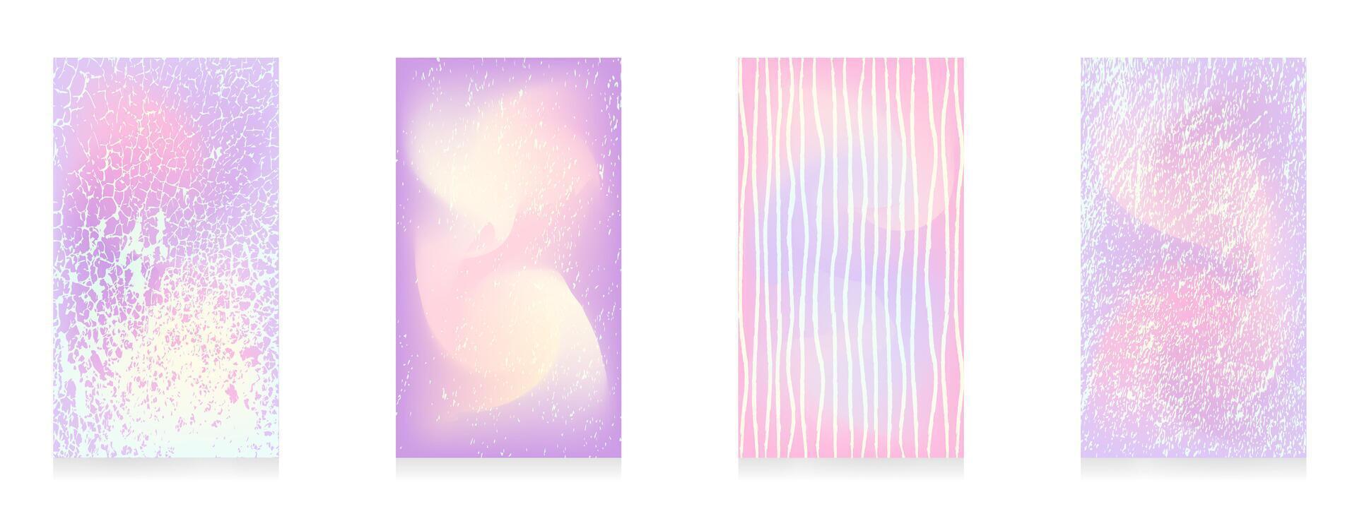 Set of four pastel grunge backgrounds with textured and abstract patterns. Vertical pastel gradients for social media stories. Dynamic background with blurred liquid texture. Pro Vector