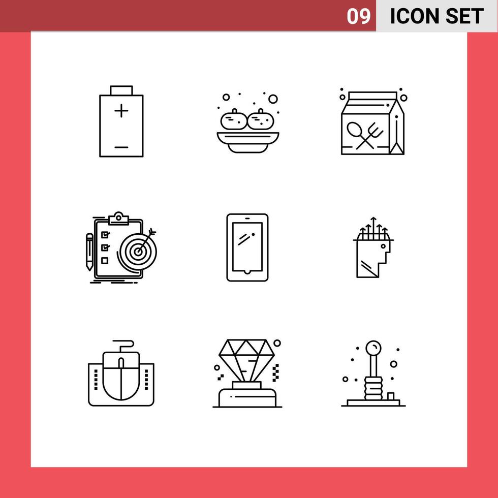 Editable element Line Pack of 9 Simple Outlines of phone target drink analytics goals Editable element Design Elements vector