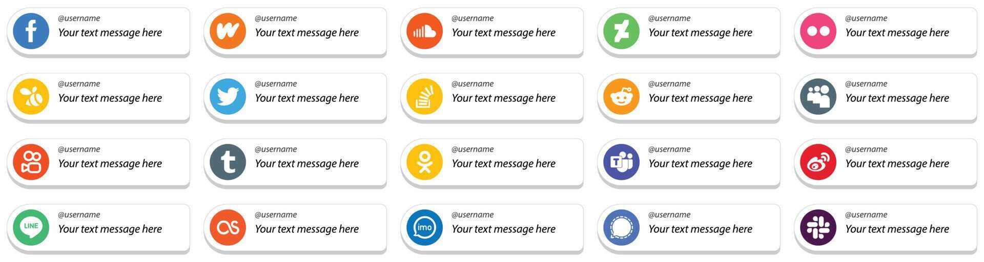 20 Stylish Card Style Follow Me Social Media Icons with Custom Message Option such as overflow question deviantart stockoverflow and twitter icons Creative and professional Free Vector