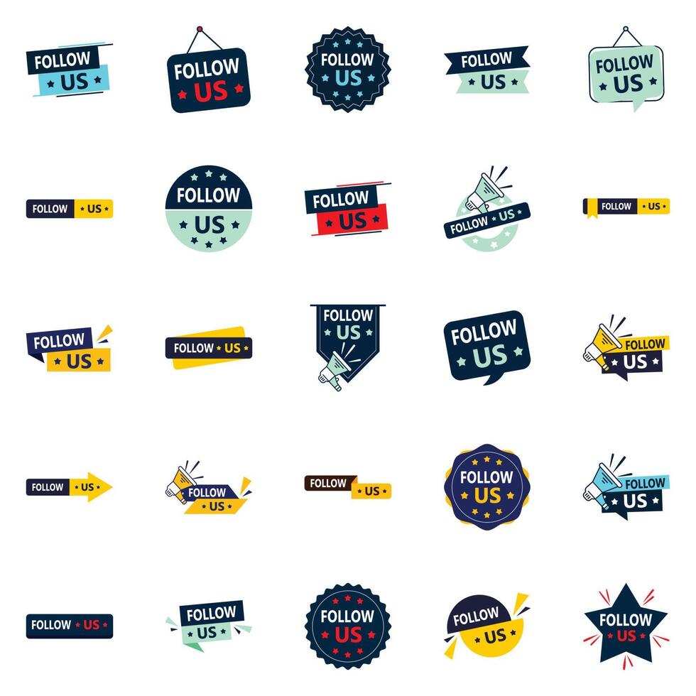 25 Follow Generating Follow Us Graphic Elements for LinkedIn and Pinterest vector