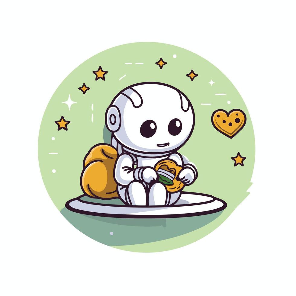 Cute little robot with carrot and heart on white background element illustration Free Vector