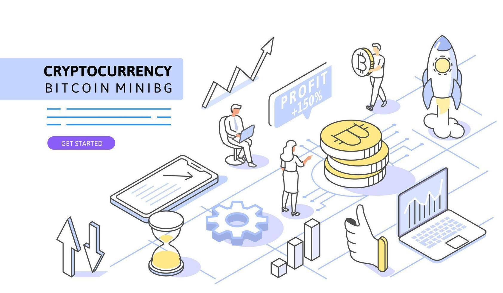 Bitcoin mining Isometric Concept. Use for web page, banner, infographics. Flat illustration editable line. Pro Vector