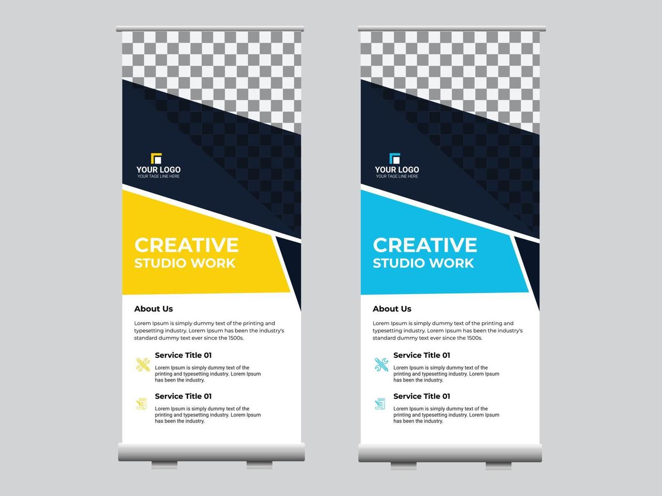 Abstract roll up display standee banner in dark and light shade Free Vector