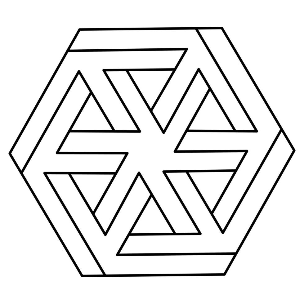 Sacred geometry hexagon. Impossible shapes. Web design element. Optical illusion object. Line design. Geometric figures. Optical art. Pro Vector