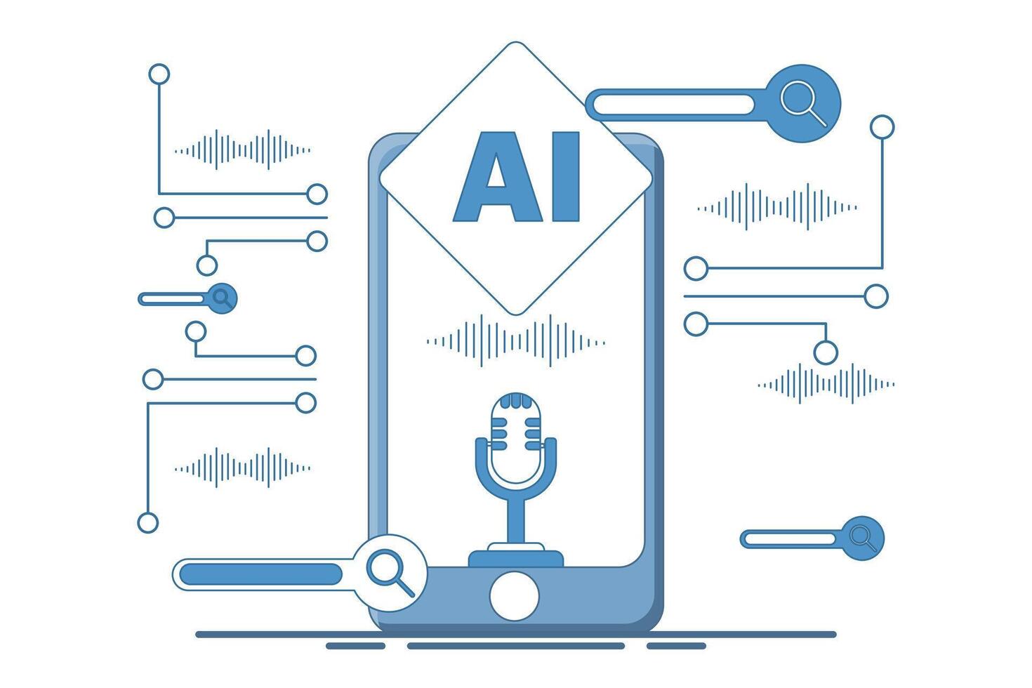 AI Phone concept, smart technology mobile device with digital voice assistant and artificial intelligence. Ai smartphone with machine learning application, speech recognition. illustration. Pro Vector