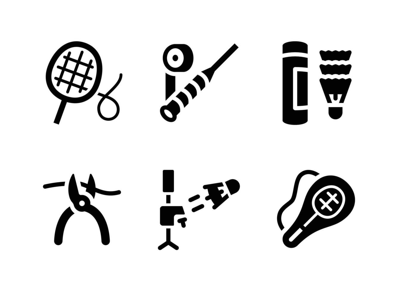 Simple Set of Badminton Related Solid Icons. Contains Icons as Racket, Grip Tape, Shuttlecocks and more. Pro Vector