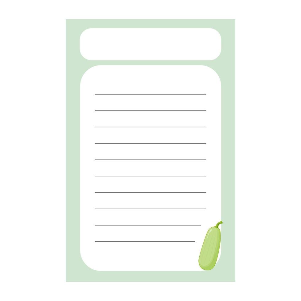 The template for a sheet in a notebook. A sheet featuring a picture of a zucchini.Striped sheet Pro Vector