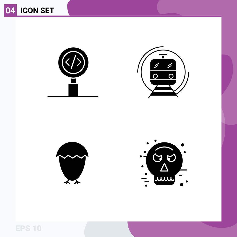 Solid Glyph Pack of Universal Symbols of code transport programming train easter Editable element Design Elements Free Vector