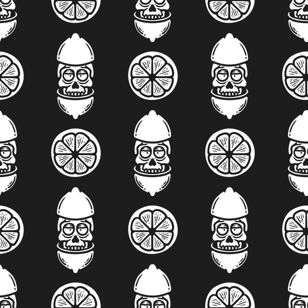 seamless pattern a skull emerging from a split lemon with lemon slices vector