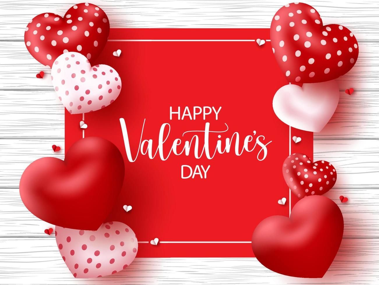 Valentine's day vector template design. Happy valentine's day text in empty red space for messages with 3d realistic and paper cut heart shape element for valentines greeting card. Vector illustration Pro Vector